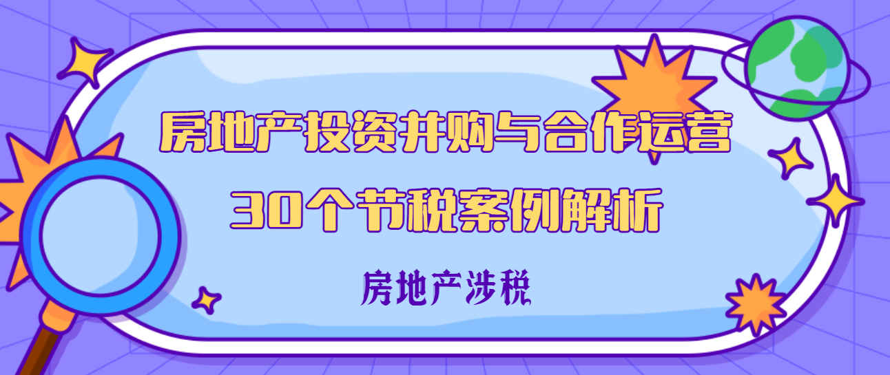 房地产涉税-房地产投资并购与合作运营30个节税案例解析